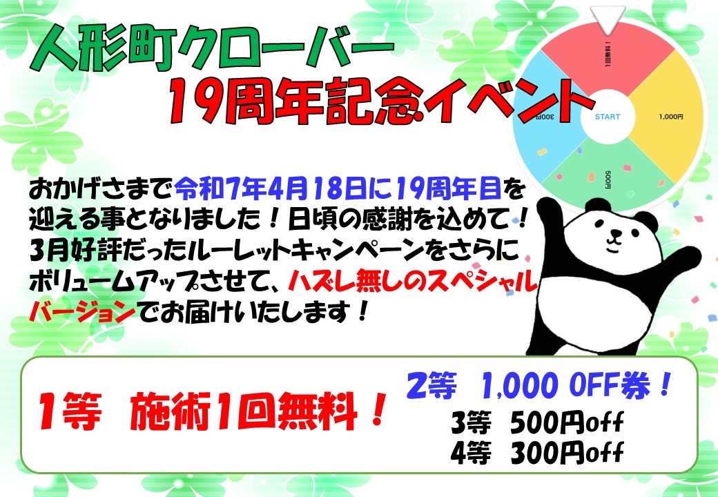 いつも人形町駅前整体院~クローバーカイロプラクティック~をご愛顧頂きありがとうございます!