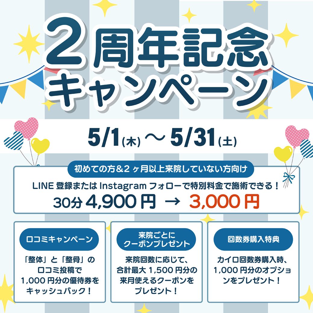 📅5月1日(水)~5月31日(金)まで ✨2周年記念キャンペーン✨を開催いたします👏