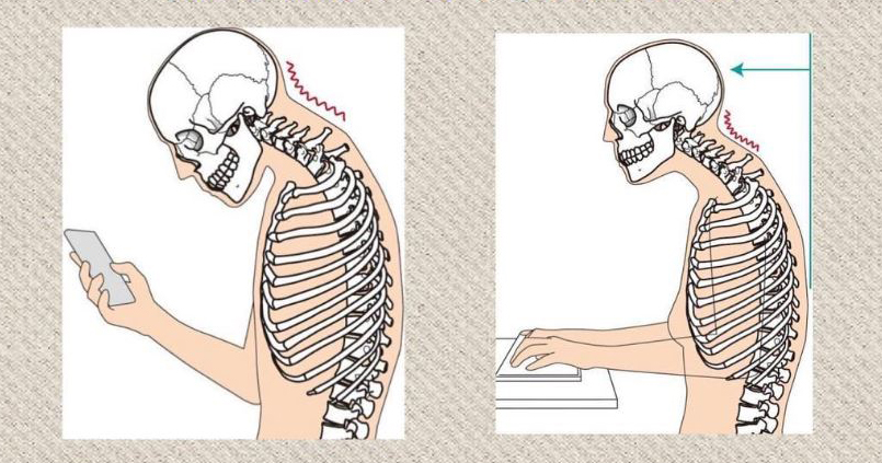重い頭が前方に来るため、支えるために首や肩回りの筋肉が固くなり、