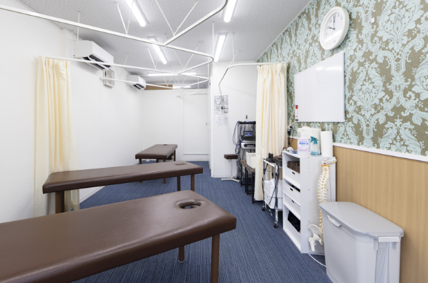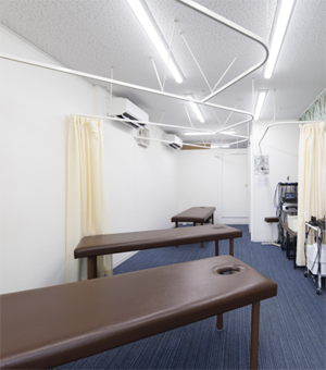 | 電気療法 | 干渉波という、身体に一番やさしい電気を流します。 血行を良くし、硬い筋肉を柔らかくしたり痛みの緩和を促します。(約10分) ※狭心症等ある方はお申し出ください。 |