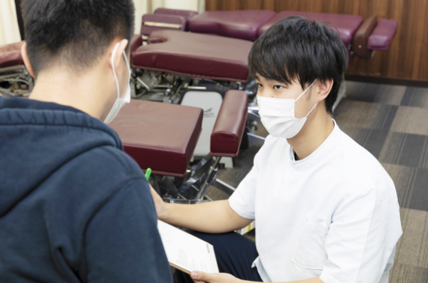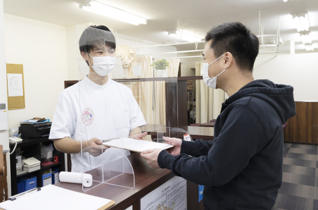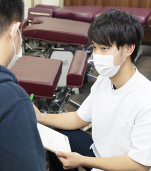 問診票をもとに、担当スタッフが「いつ」「どこで」「どのような状況」で受傷されたのかを簡単に伺います。